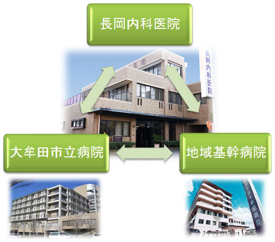 - 大牟田市立病院、久留米大学病院、大牟田済生会病院などの拠点病院と連携医療